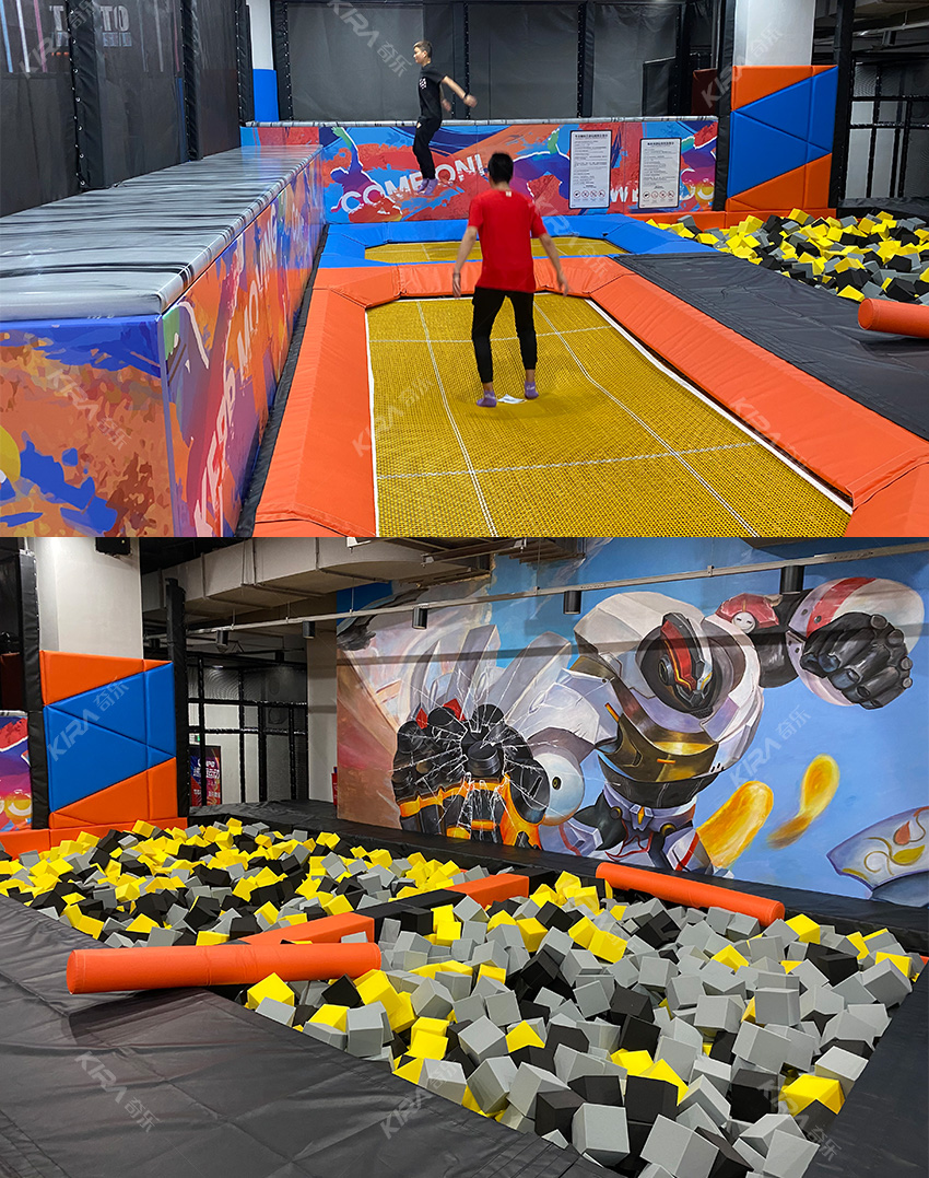 該運動公園主要以蹦床為主,另外還有攀爬拓展,鐳射對戰,VR互動,自由蹦床,扣籃蹦床區等等這種一蹦床為主,多種游樂項目結合的運動公園,是當下非常受年輕人喜愛的。
