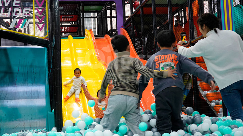 海洋球池里配備有滑梯,從波浪起伏的滑梯上一滑而下,落在滿滿的海洋球池里,更加的驚險有趣,這種