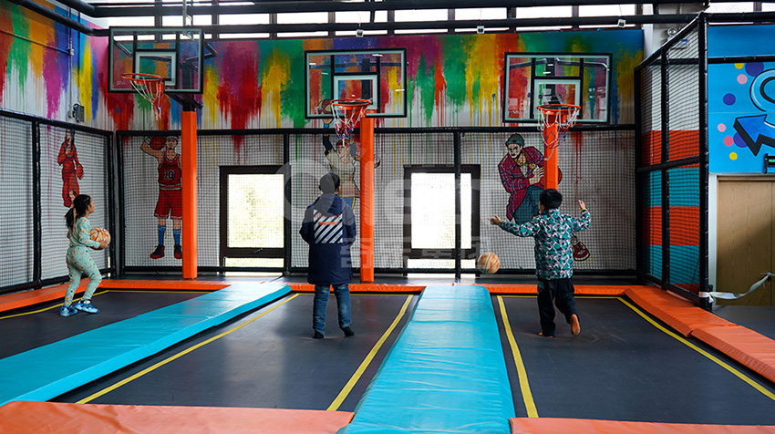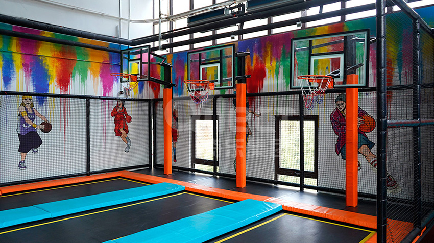 灌籃結合,使勁一蹦,灌籃絕對沒問題。下一個櫻木花道就是你!沒有身高阻礙,只看技術,借助蹦床的彈力高高躍起,在空中將籃球砸進球框。。。。。。
