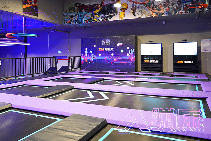 根據場地實際布局情況,我們的設計師將場館設計為7大區域,即彈跳迷宮區、蹦床競技區、極限挑戰區、高空拓展區、靈感運動區、數碼運動區和功能區。
