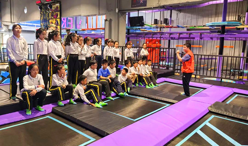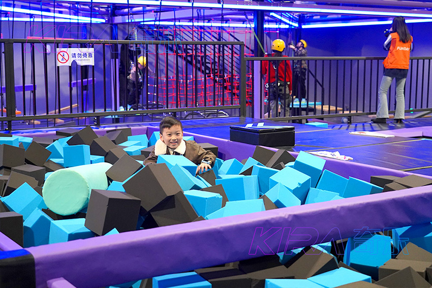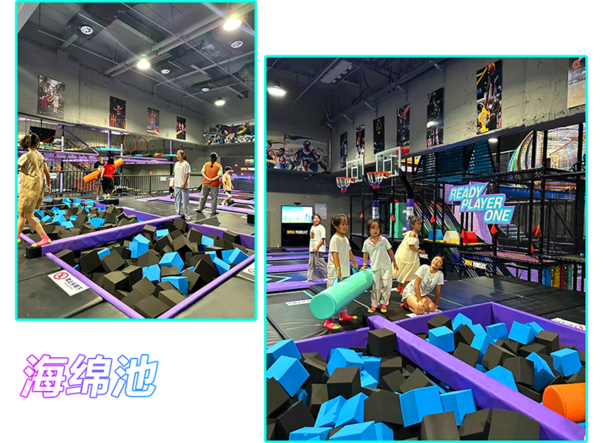 蹦床競技區是集自由蹦床、海綿池、拍拍樂、蹦床灌籃等于一體的綜合運動區域。可以體驗一把扣籃的感覺和海綿池斗智斗勇的對決!也可以進行各種團建活動。