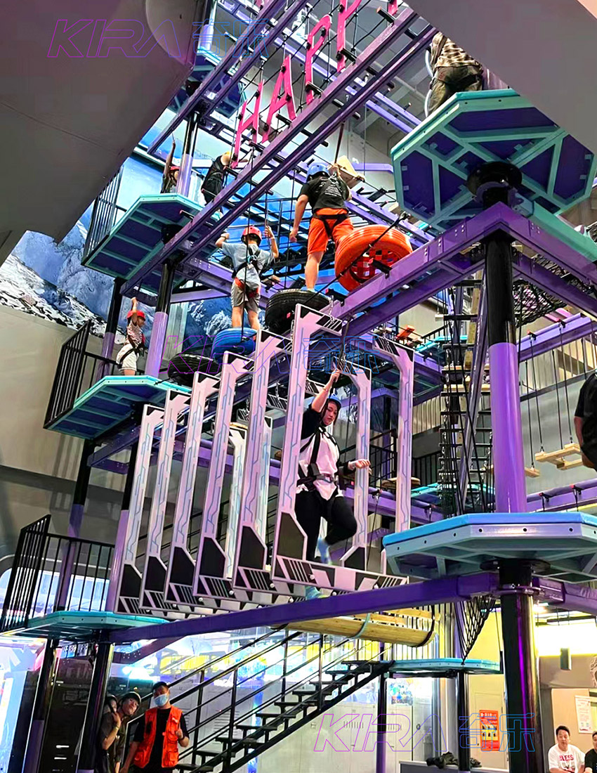 設計了高、中、低三層拓展步道,設置有懸空橋梁、鉆筒等步道關卡,游玩者需通過爬、鉆、滑、跳、跨等動作來進行探險,可以鍛煉游玩者的勇氣、毅力和身體的協調性。