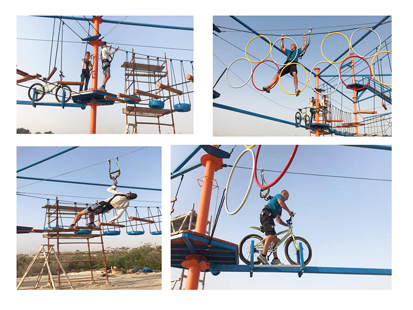 奇樂游樂是游樂設備實力廠家,美國 Galaxy Multi Rides是奇樂在美國做的忍者道拓展項目,是一個在戶外搭建起來的拓展項目,室內大人,青少年挑戰,游玩的項目。本忍者道拓展有攀巖墻,空中攀爬挑戰關卡都能多種拓展項目,是由奇樂優秀的設計師團隊設計出來的方案,忍者道拓展項目在國外是非常流行的一種項目之一,它是可以鍛煉游玩者的體能,需要有優秀的身體素質,也能鍛煉游玩者的身體。