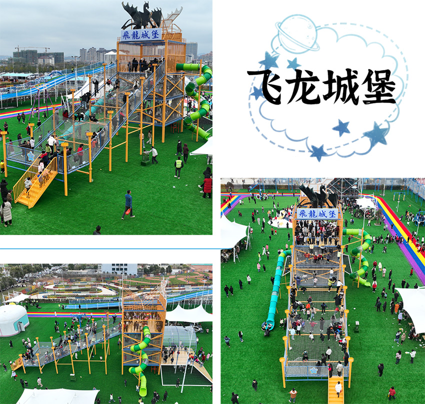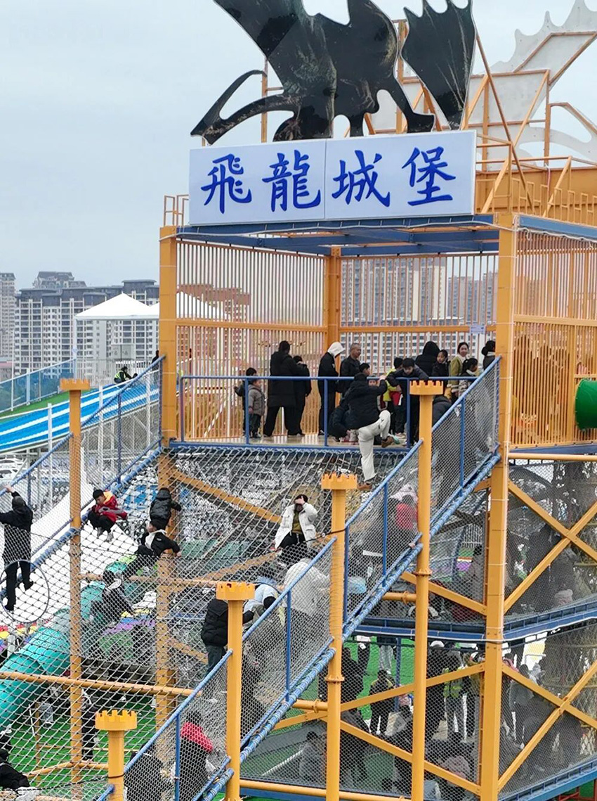 飛龍城堡:多層立體攀爬網、滑梯組合,培養孩子的勇氣與協調能力。