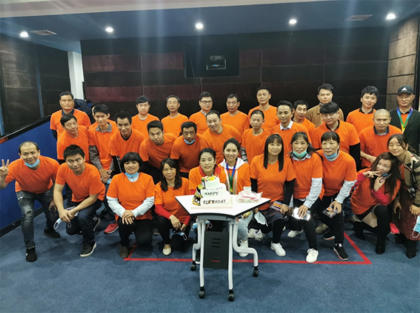 當然更大的驚喜在后面——活動最后會務人員拿出了準備已久的生日蛋糕獻給一直在工作崗位上堅守付出的壽星家人,主持人易總帶領大家齊唱生日歌,在歡樂的歌聲中,壽星家人滿懷熱情與感動許下了生日愿望并吹滅了蠟燭,全體家人將最真摯的祝福獻給了壽星家人,想必那一刻最幸福的人莫過于奇樂壽星了。