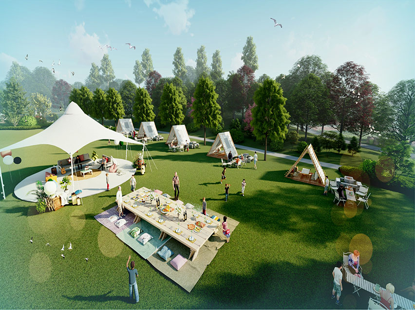 以旅游文化為特質立足于市場需求,打造集研學拓展、旅游休閑、運動體驗、野奢露營、親子娛樂、園藝花藝技能培訓等功能于一體的新型旅游度假綜合體項目。