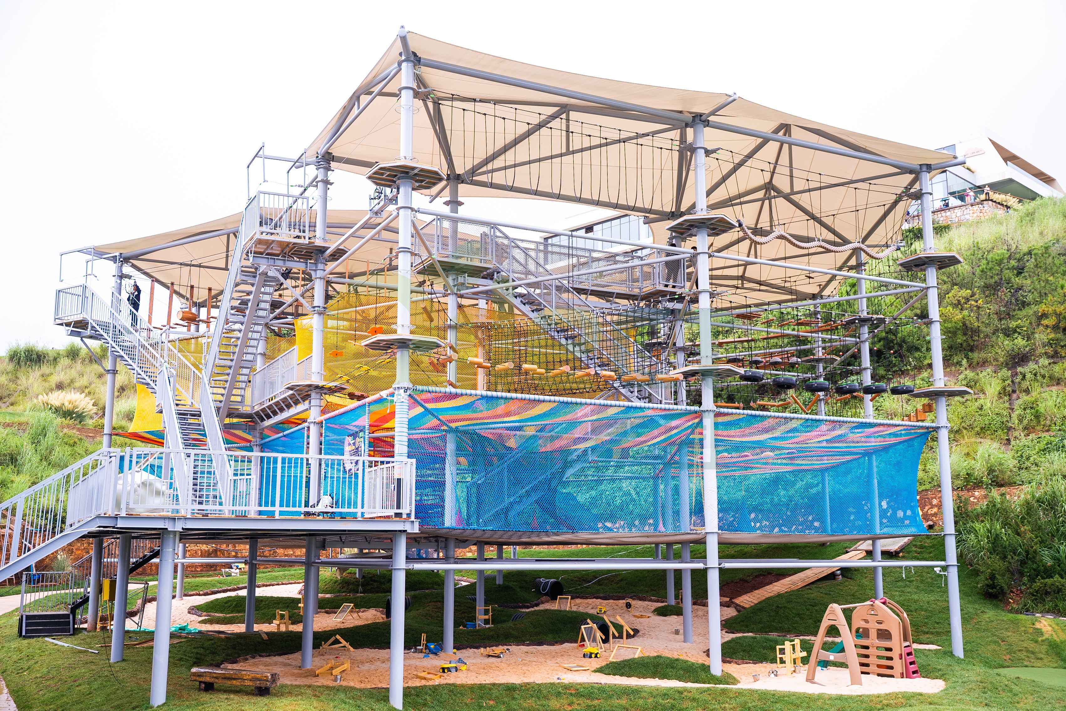 廣州奇樂在繩網類產品上擁有成熟的工藝和豐富的經驗,能夠根據場地條件設計不同規模和形態的繩網攀爬結構。