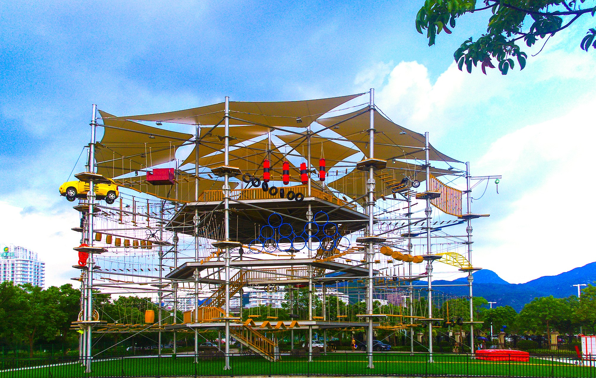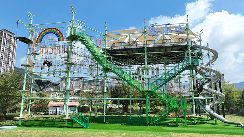 數據印證:這座總高度29.8米、占地1100平方米的立體探險設施,項目運營首季度即吸引超10萬人次體驗,周末高峰時段需預約等候2小時。其成功經驗已復制到惠州羅浮山叢林穿越探險樂園等全國20余個文旅綜合體,形成“奇樂模式”的行業標桿。