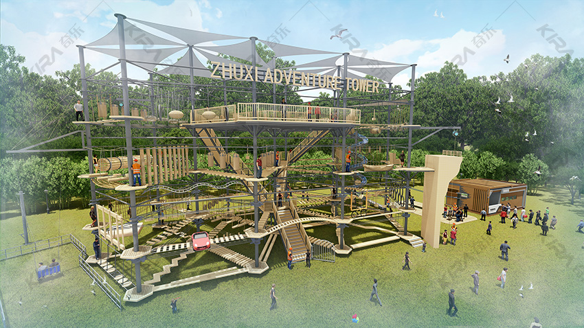 本項目適用于各種親子主題類的樂園,巧妙運用“熊貓”IP造型設計,集拓展、探險、滑道、飛索、蹦極、不銹鋼滑梯、攀巖、爬網等46種不同運動體驗的文化主題項目,結合“大灰熊”IP形象,融入相關設計元素,打造差異化的網紅IP主題性運動拓展營地綜合體。 在裝飾設計上采用竹葉和竹竿的綠色設計元素,以原生態、自然風格為基調,采用原木、繩網和不銹鋼等柔韌度好的生態材料。滿足大眾貼近自然、主題鮮明、寓教于樂的兒童素質訓練教育親子樂園的精神訴求。
