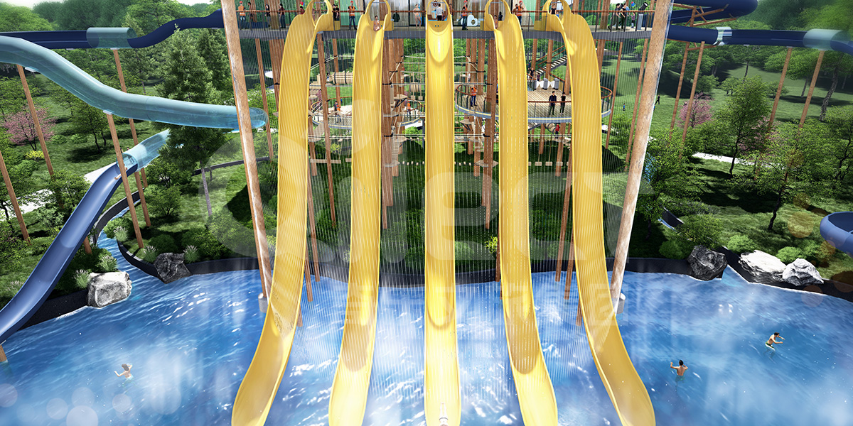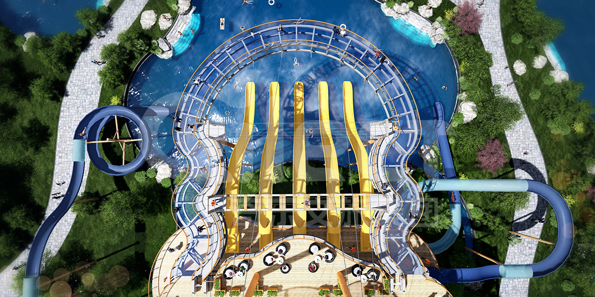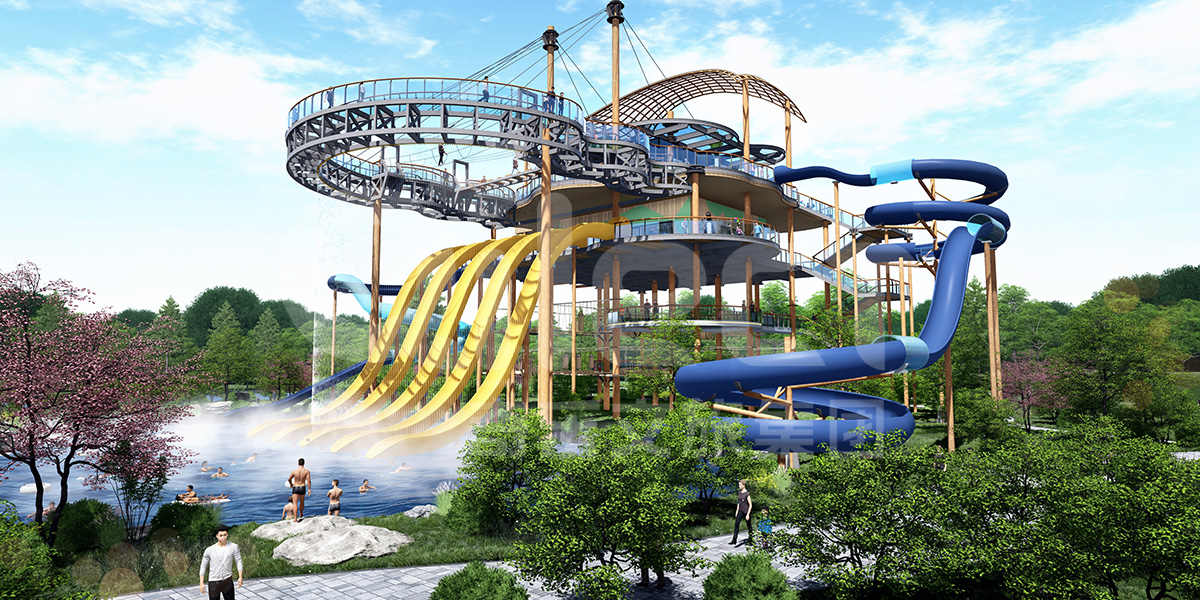 O 本項目最大的特色在于增設了連接高空平臺與溫泉造浪池的大型滑梯,滑梯由塑料制成以垂直、螺旋形態呈現出來,不僅能夠作為作為貫通上下的通道,同時也是一項具有趣味性的游樂項目,滑梯面十分寬敞光滑游客在體驗過程中能夠得到前所未有的刺激享受?;莸脑O置將溫泉景區水系資源的娛樂性充分挖掘出來,對于專程前來泡溫泉的游客而言,養生娛樂兩不誤的休閑放松模式無疑更加具有吸引力。